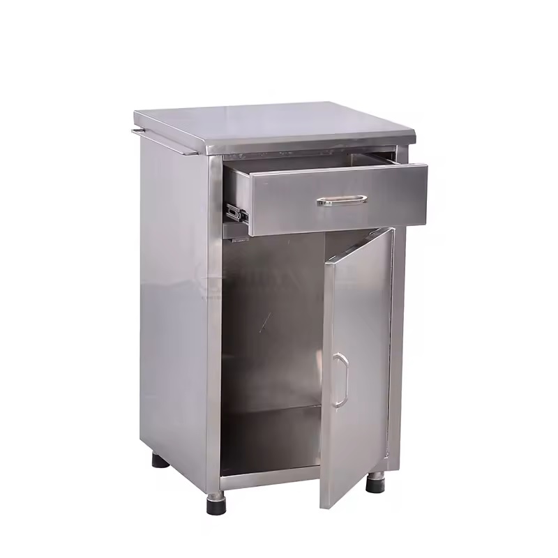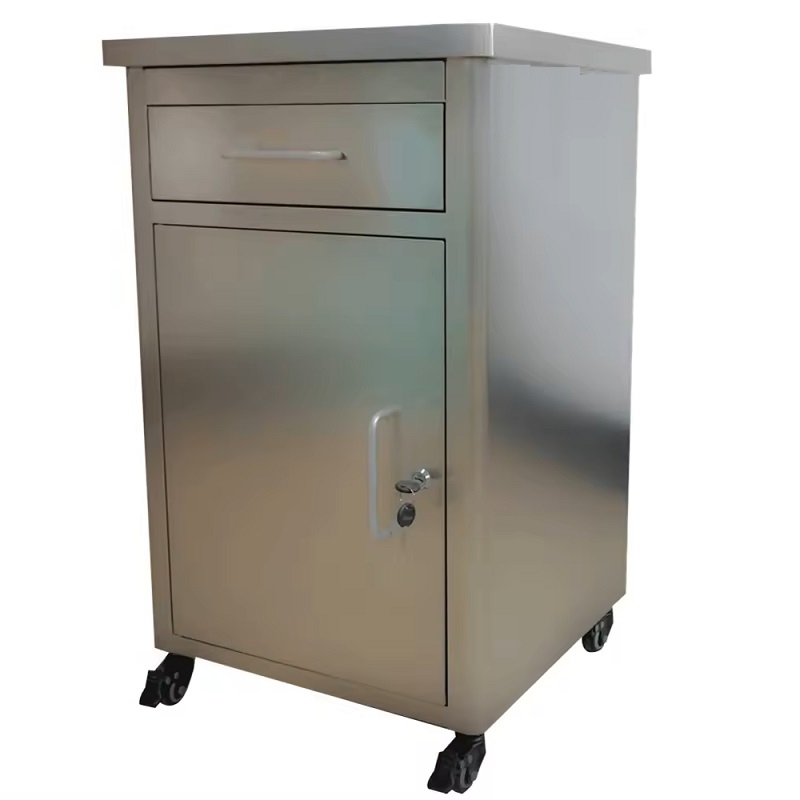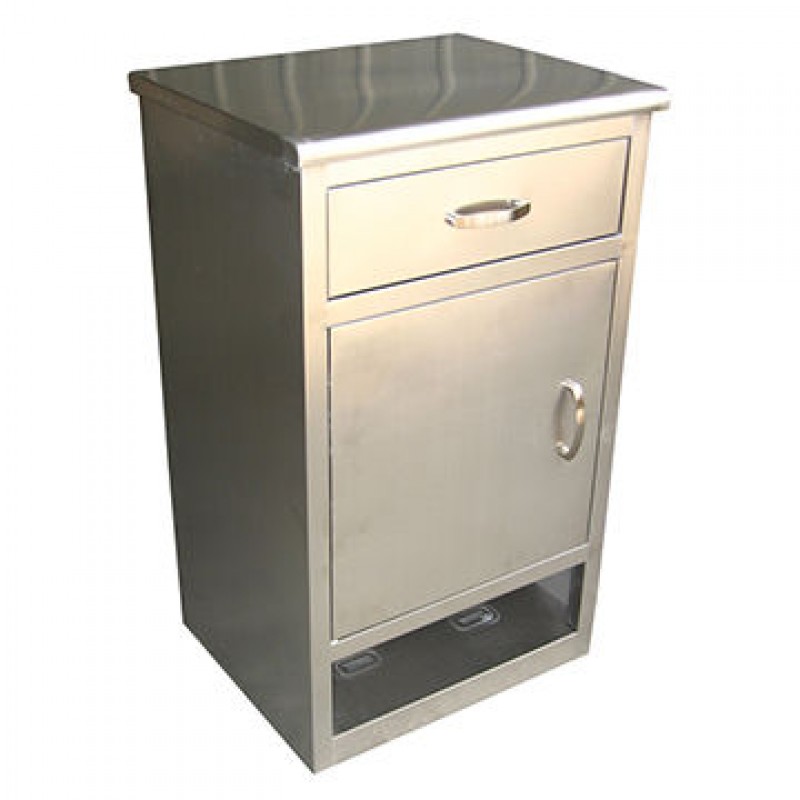 Stainless Steel Bedside cabinets are manufactured using Prime grade Stainless Steel sheet enclosed from all three sides with Pure Satin finish. With Drawer at upper side and large storage Cabinet at bottom, these Cabinets are most suitable for keeping & storing all essential medicines, documents and patient’s personal items safely. Mounted on PVC Stumps / Rubber Shoes for better stability or can also be optionally ordered with 50cm Castors setup for easy mobility.