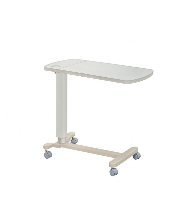 These Deluxe Overbed Tables are made using all quality Material. The rigid base is made from Epoxy coated CRCA ERW tubular steel Covered with ABS cover & mounted on Heavy duty 50mm Castor wheels, comes with Aluminium extruded telescopic section fitted with gas spring for smooth height Adjustment. Mounted with Single section ABS top with raised edges on all sides and easy to clean. The Table height can be easily adjusted from 790m to 1070mm approx.
