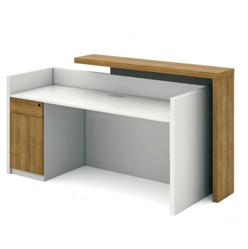 Scimed Curio is a contemporary reception desk finished in a combination of solid white and light oak laminate. Designed with elements of solid wood, its sleek and trendy looks make it a perfect choice for modern offices. This space saving front desk also includes a storage pedestal with lock for added convenience and functionality. Suitable for seating one to two person, built with top grade raw materials for lasting durability, natural feel and luxurious looks. It is part of the Curio series which offers many more option of Modular Office furniture.