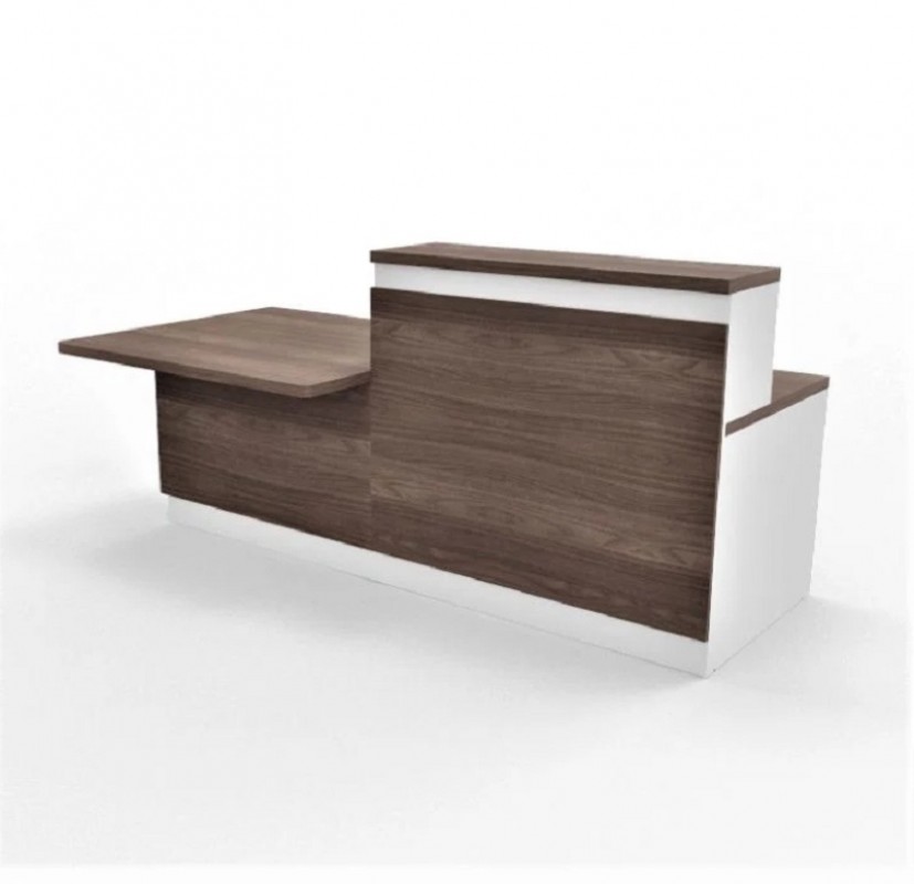 Sturdy Modular Design, comes with White melamine structure and white counter base Full counter-depth legs at the extremities and space saving intermediary legs facilitating mobility between modules (with height-adjustable feet) Worktops fitted with 2 cable ports Metal cable trough for wire routing Welcome sign can be printed in company logo Welcome sign available with LED backlight White or amber walnut melamine finishes available Five choices of melamine and metal cladding High modules are 1150mm high Low modules are DAA (disability discrimination act) compliant at 740mm high.